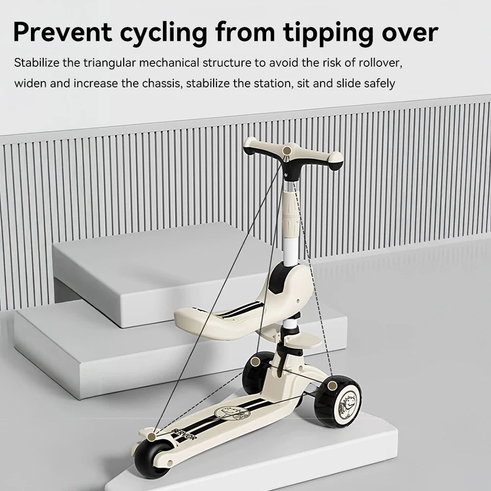 Children's Scooter Sit or Stand Ride with Flashing wheels Music Lights Foldable Seat for Boys and Girls Ages 3-10 Years Old